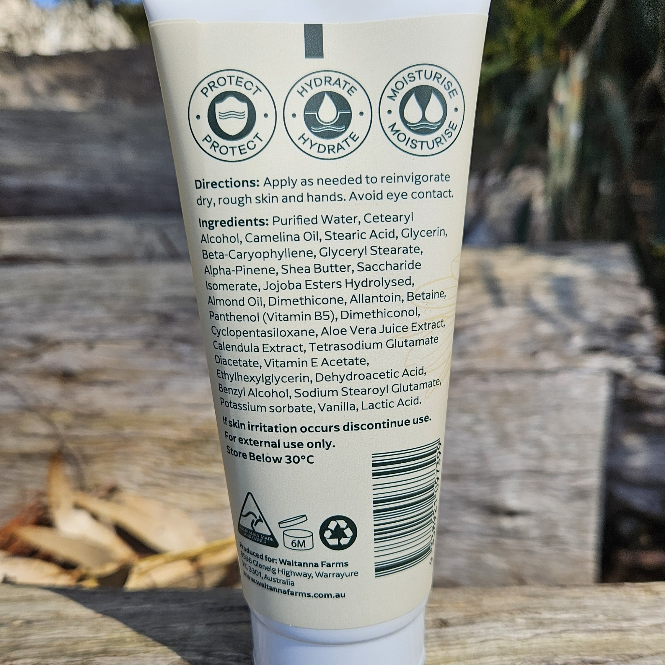 Waltanna Farms Skin & Hand Cream is the perfect choice for working hands! An amazing restorative hand cream for those who may be required to sanitise and wash hands regularly or for tough farming / trade hands.