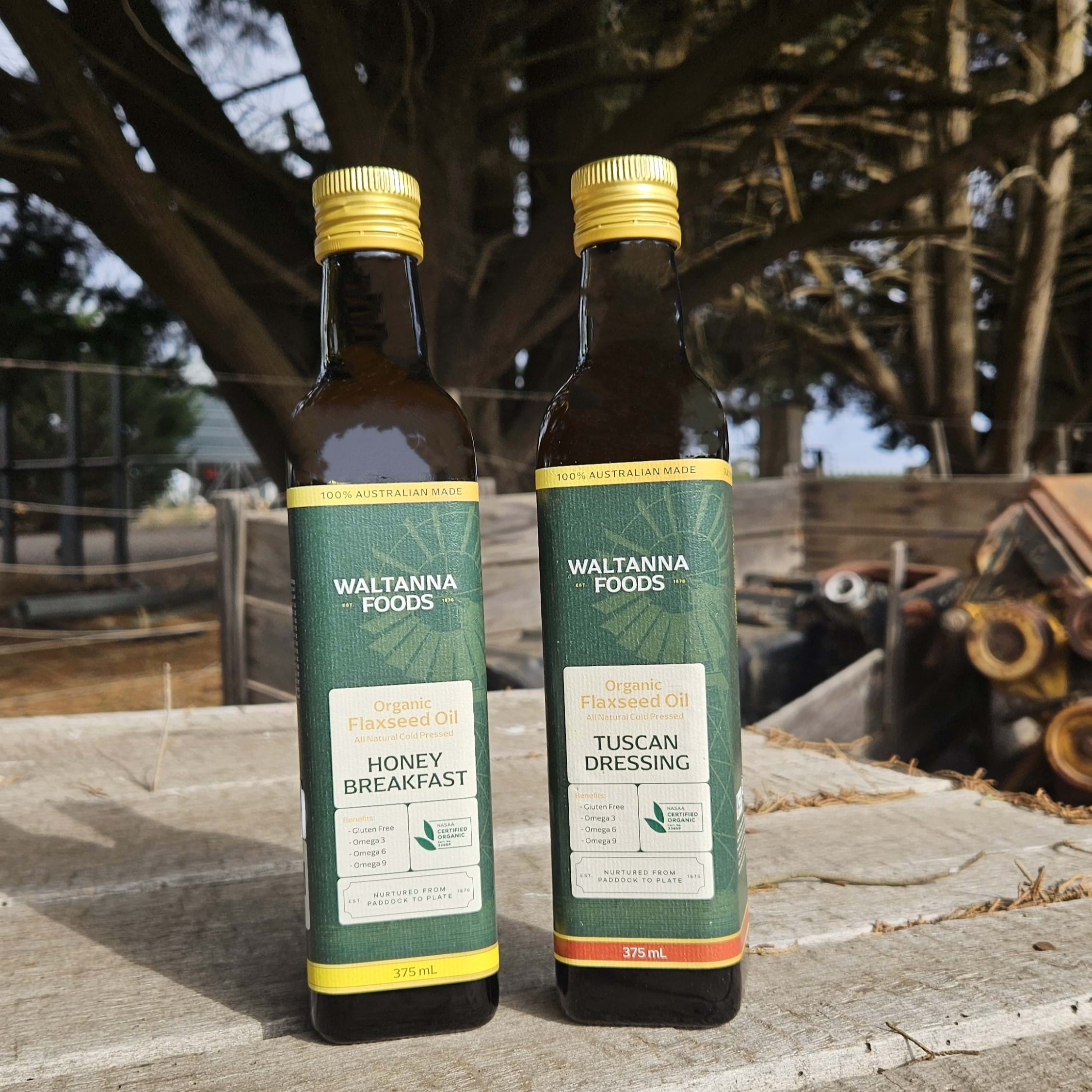 More about our Honey Breakfast Dressing: Waltanna Food's Honey Breakfast Oil is our renown organic flaxseed oil infused with organic Australian honey. This blend is perfect for the breakfast table - on cereal, oats, toasts, crumpets, croissants, etc.