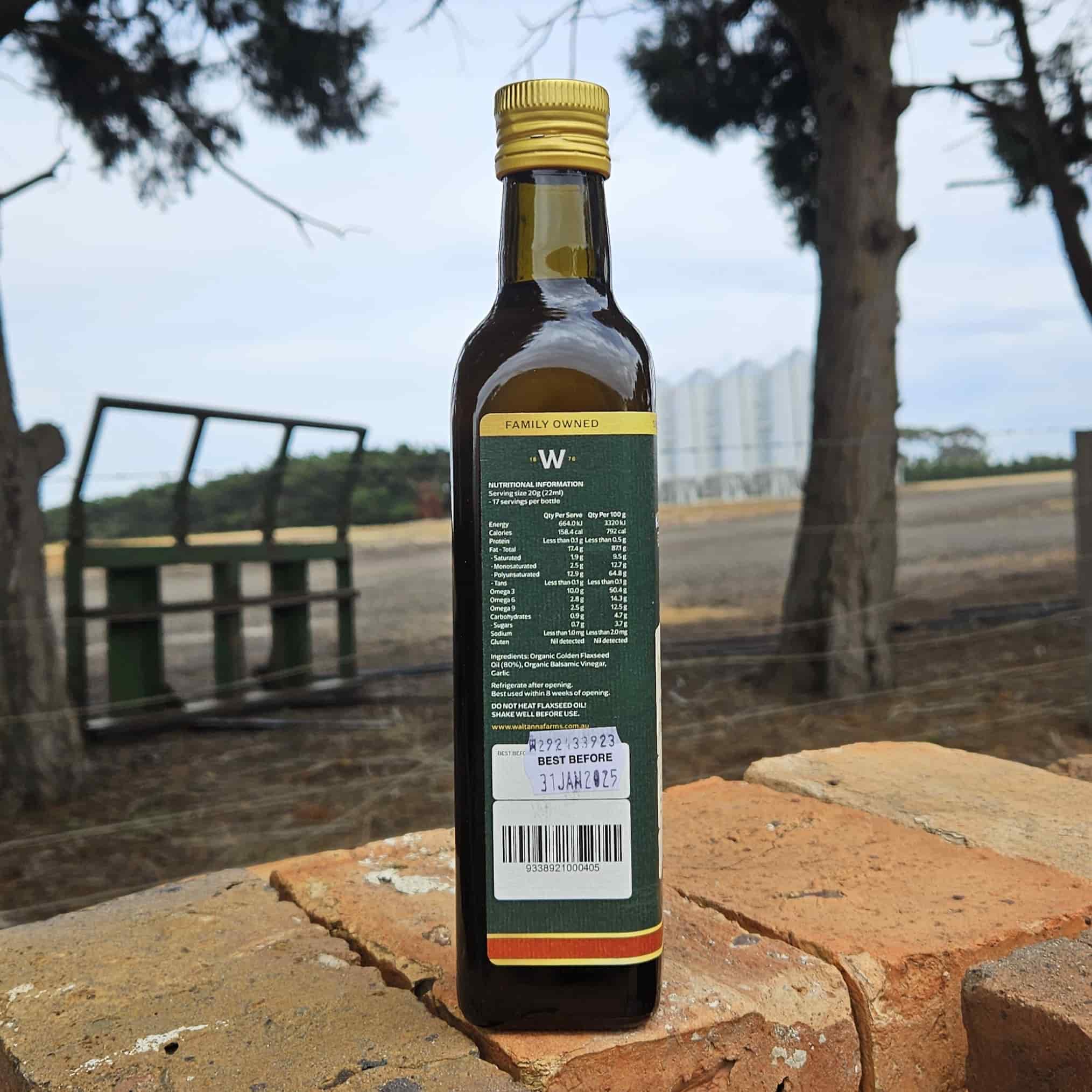Ingredients: Organic Golden Flaxseed Oil (80%), Organic Balsamic Vinegar, Garlic